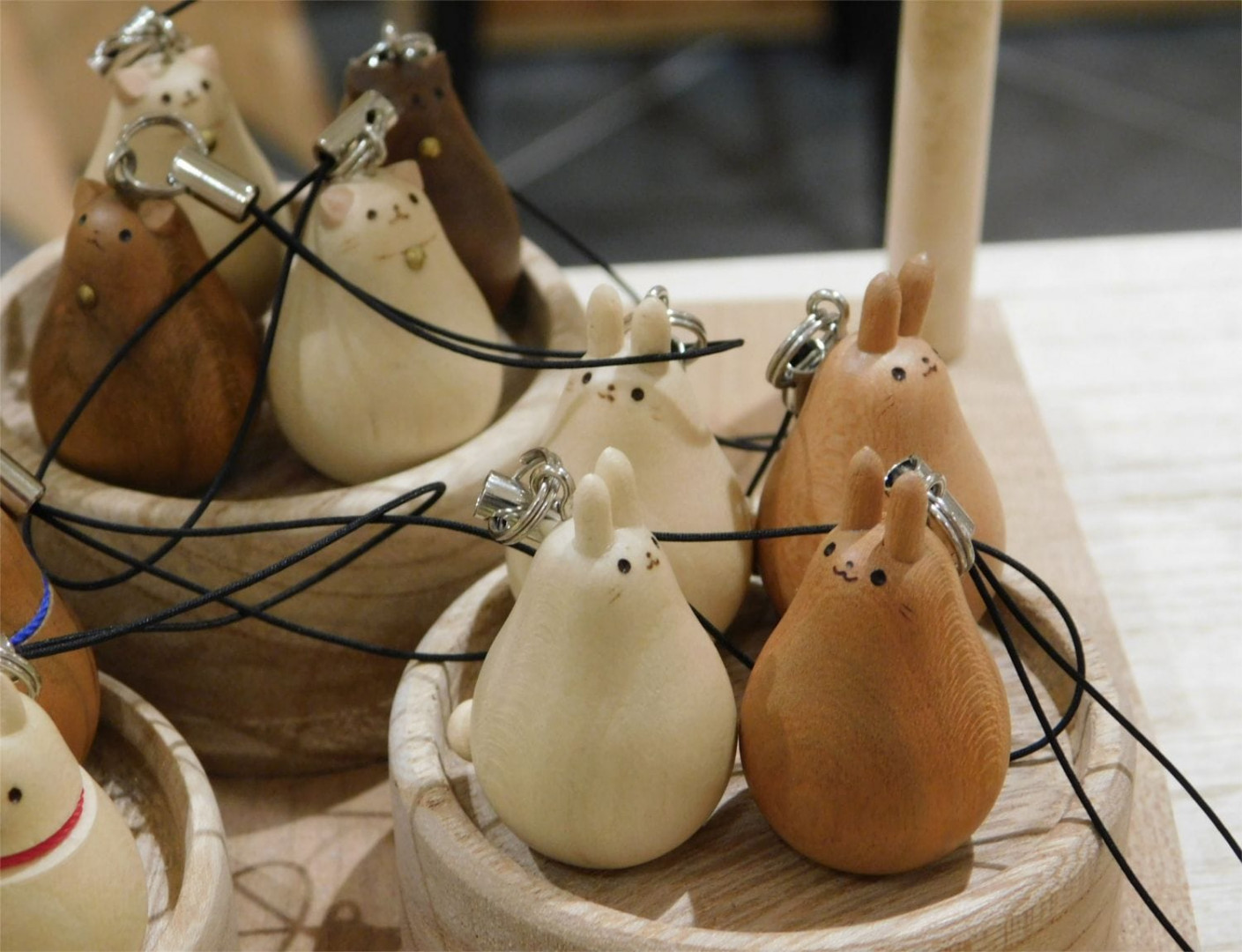 These pieces come in many forms, including tableware, jewelry, and of course, interlocking wooden puzzles too. But one of their most popular items are these handcrafted wooden animal cell phone or bag straps; you can choose from birds, chickens, pigs, bears, cats, Shiba inu, and these rabbits too. Why not pick up something to decorate your home with, or find something for someone special here?