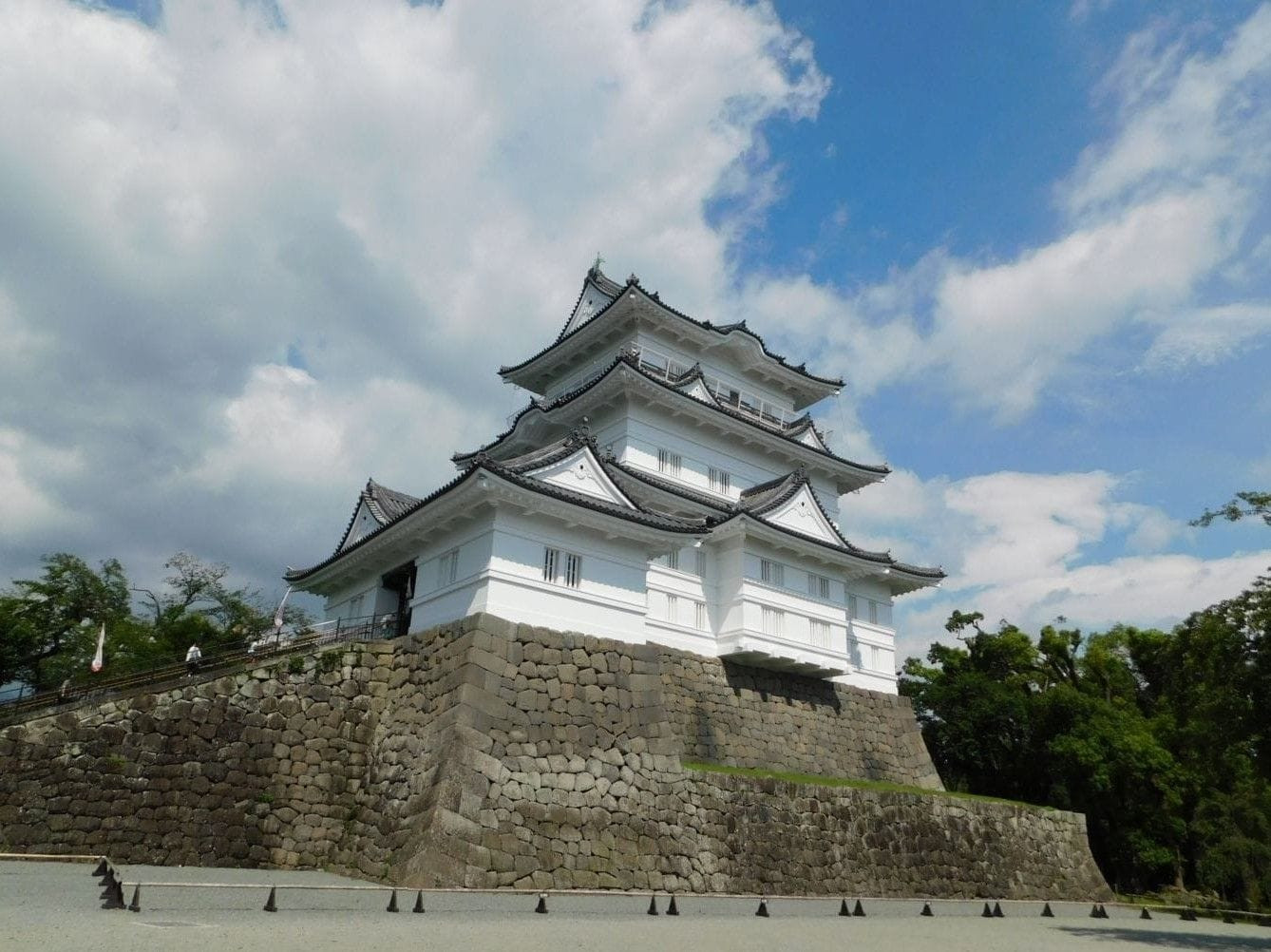 After crossing a small bridge and climbing up the stone stairs, this is the sight that greets you at the top! This is Odawara Castle, the completely refurbished castle tower and exhibition. The castle underwent a considerable renovation and reopened in May 2016, with numerous new additions and exhibition spaces where various artifacts and items from the castle and surrounding area's history can be seen.