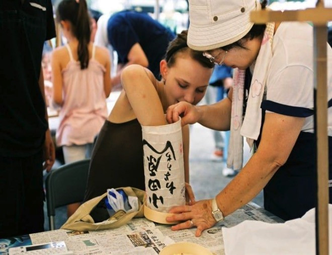 Odawara lanterns are known for their collapsible bellows shape and were made famous throughout Japan in the nursery rhyme "Osaru no Kagoya". During this course, participants can paint their own designs or Japanese characters on the paper bellows and then attach them to a bamboo frame. (The workshop is being held every month on the 2nd and 4th Sunday. Participation fee: 1000 yen)
