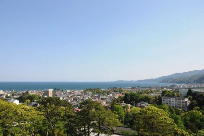 From the fifth floor of the castle, you can venture outside and take in a stunning view of Sagami Bay and all of Odawara spreading out around you. I'm so glad it turned into a sunny day!