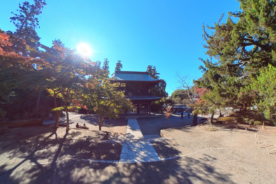 円觉寺距离北鎌仓站只有一分钟的步行距离。在深秋红叶最美丽的时候造访这里吧。円觉寺的茶室提供美味的热甘酒。