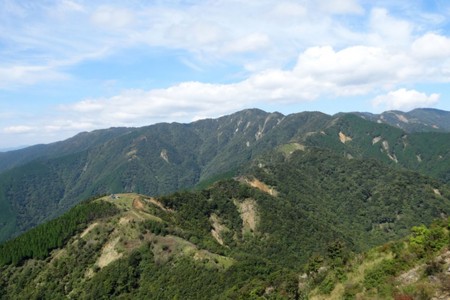 登上行者岳的山顶是一系列小幅度的上坡和下坡。 行者山山顶狭窄,不适合团体休息。 山顶上曾供奉着役行者石像,但已被风雨损坏。 从行者岳到新大日有好几个地方需要攀登,请注意。