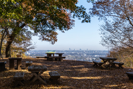 漫步于山间田边的幽静小路。由广泽寺温泉前的寂静林间小道出发,沿途欣赏瀑布飞落,眺望大釜弁财天的身姿,进入其前方的山路。穿过曲折的七曲峠,沿着山脊攀越海拔404m的日向山。