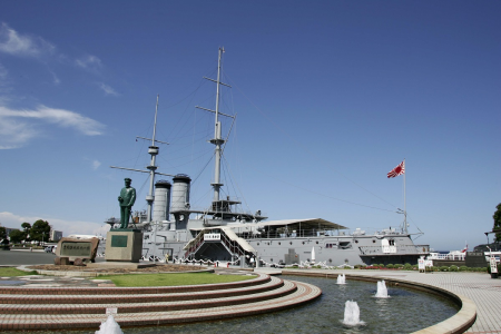 世界三大纪念舰其一的三笠号战列舰,在日俄战争时期,率领联合舰队,击沈了俄国波罗的海舰队。甲板下有一座博物馆,介绍三笠号战列舰的完整历史。