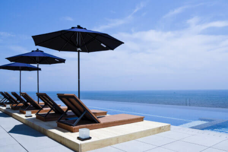 温泉及水疗设施THERMAL SPA S. WAVE,内配备无边际泳池和桑拿,开放式的大厅俯瞰绿意盎然的花园、餐厅以及大海。这是度过休闲时光的绝佳地点,让您可以享受海外渡假村式的假期。设施为您提供各种渡假方案,从家庭式方案到成年人方案应有尽有。