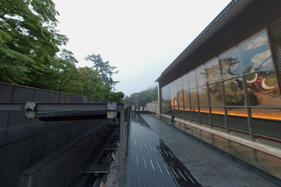 美术馆建于存在于明治时代的面向欧美顾客的旅馆“开化亭”的遗址上。五层建筑的建筑面积为7,700㎡,使用面积约为5,000㎡。馆内设有昭和初期的日本民居改建而成的雅致餐厅“开化亭”,以及100%使用源泉温泉的足浴咖啡厅,供客人休憩放松。馆内展出着日本、中国、韩国等古今各类艺术品。