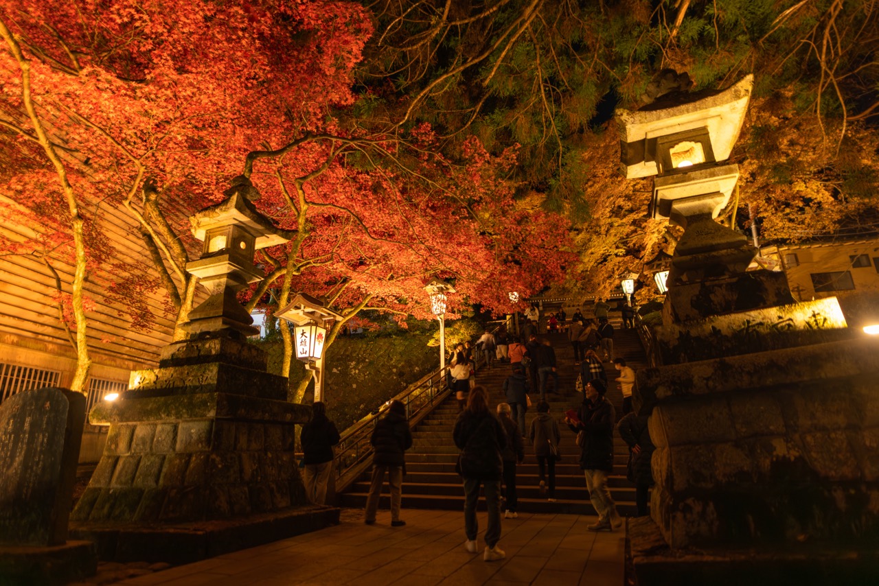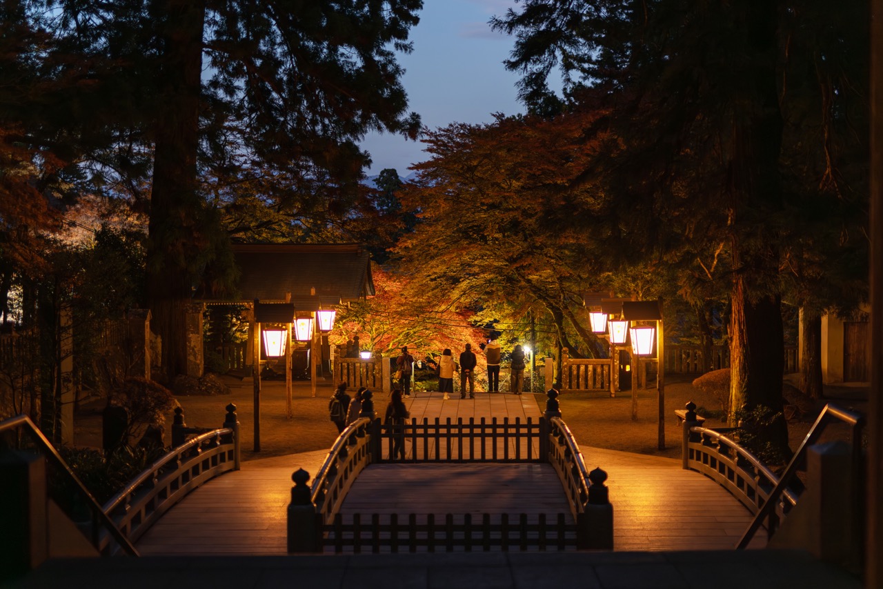 每年十一月,大雄山最乘寺都会因年度的“足柄灯之祭典”而成为南足柄最迷人的秋季景点之一。在十一月下旬的限定期间,寺院高耸的杉木林与绚丽的枫树从傍晚起点亮至夜间,将原本宁静的境内化为金色、琥珀色与深红交织的迷人光景。游客可以漫步寺院参道、探索被灯笼照亮的小径,并把握难得的机会,在日落后体验最乘寺的神圣氛围。