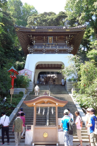 江之岛有一座同名的神社,您可以从几级台阶上爬上去。如果您爬楼梯有困难,也可以乘坐自动扶梯进入神社,非常方便。