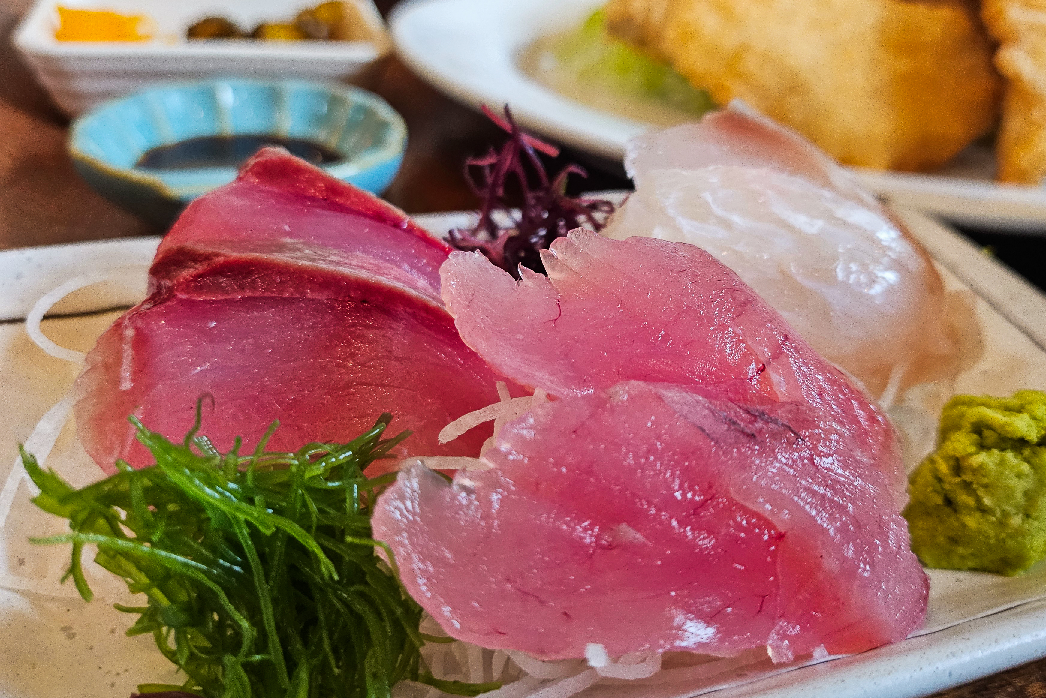 从摆放在当地切丝萝卜床上的生鱼片拼盘——三文鱼、金枪鱼搭配平冢特色的小银鱼、鱿鱼和红鲷鱼——到经典的定食套餐,配有炸竹荚鱼、松软白饭、热味增汤、腌制蔬菜,还可以选择加点其他配菜,这里真的能满足各种口味需求。