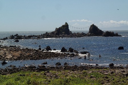 三石又名笠岛,是真鹤半岛的象征,以日出初见而闻名。这是一个只有在退潮时才与半岛相连的神秘之地。