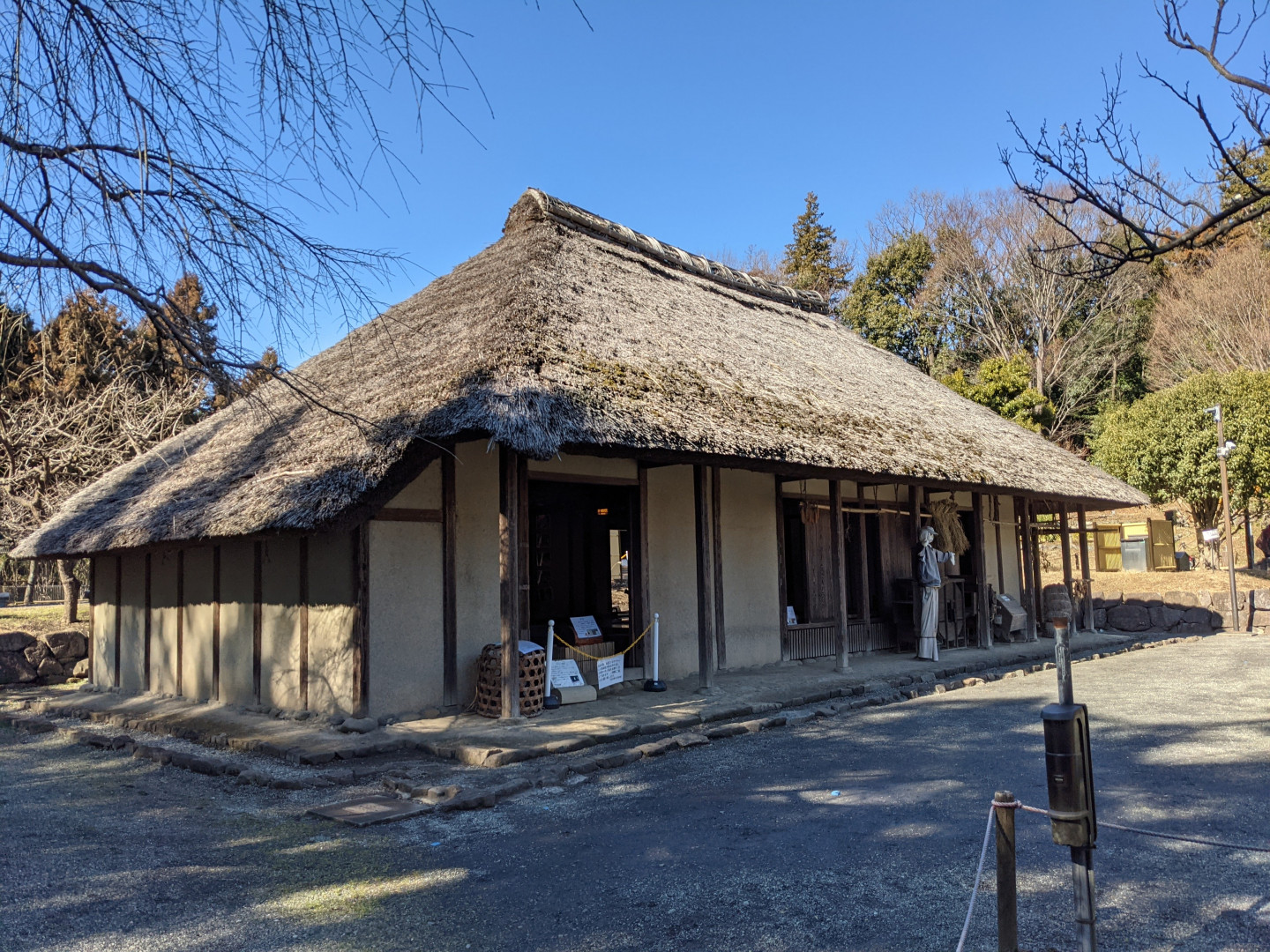 到了泉之森的西南角,傳統的民家風格的日本民居就會悄悄進入視野。可以近距離地參觀這些雄偉而又充滿鄉土氣息的農舍,還可以詳細地了解(日語)從odoguchi正門到中央座敷區的不同部分,以及當時使用的工具(爐灶鍋)。